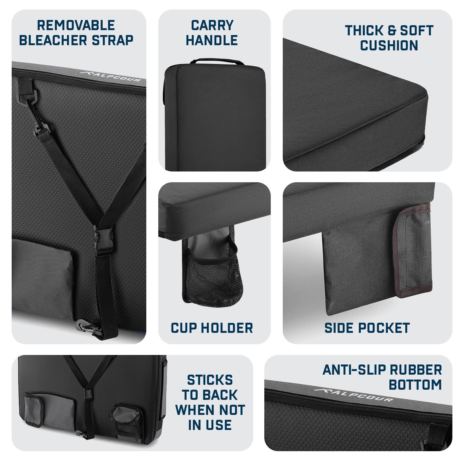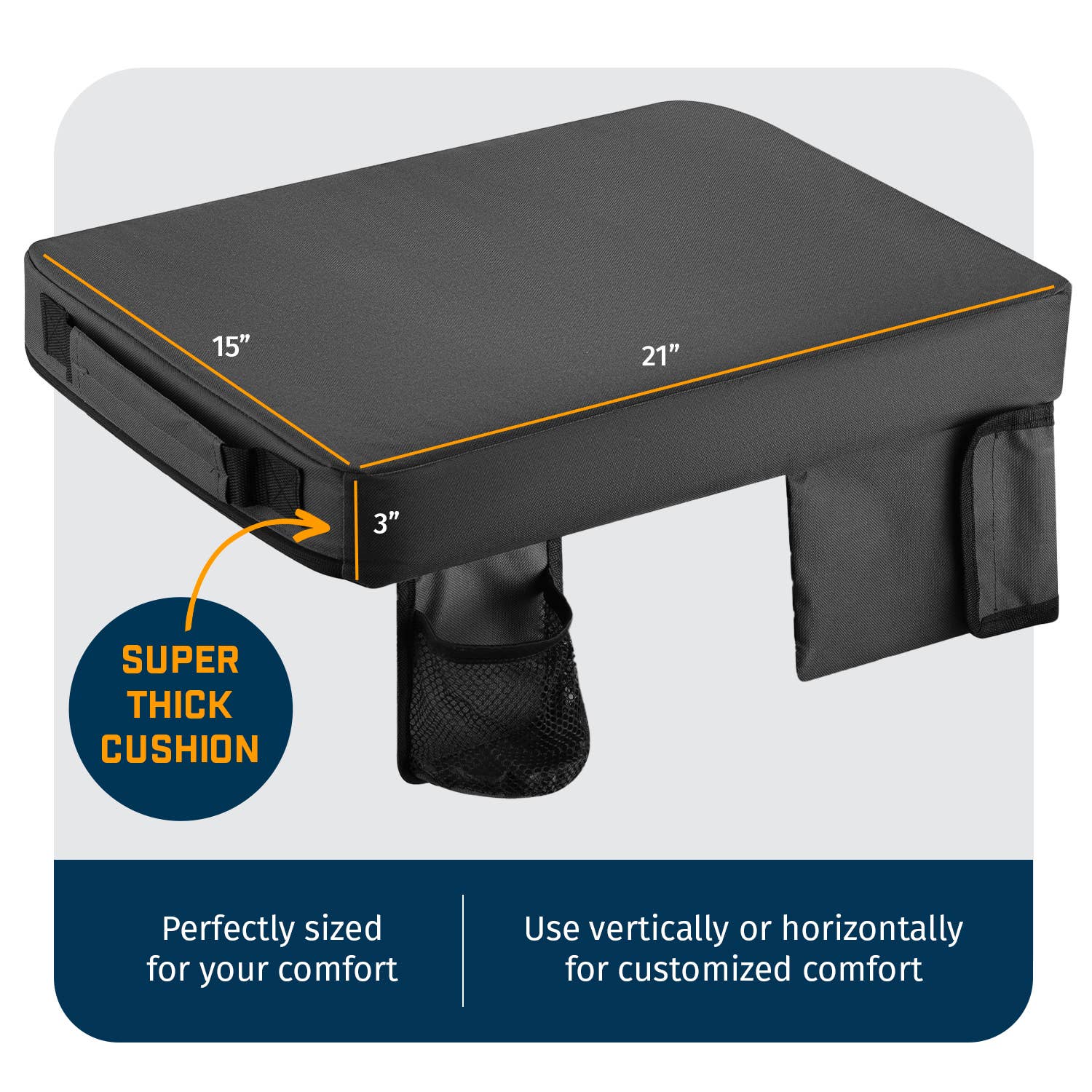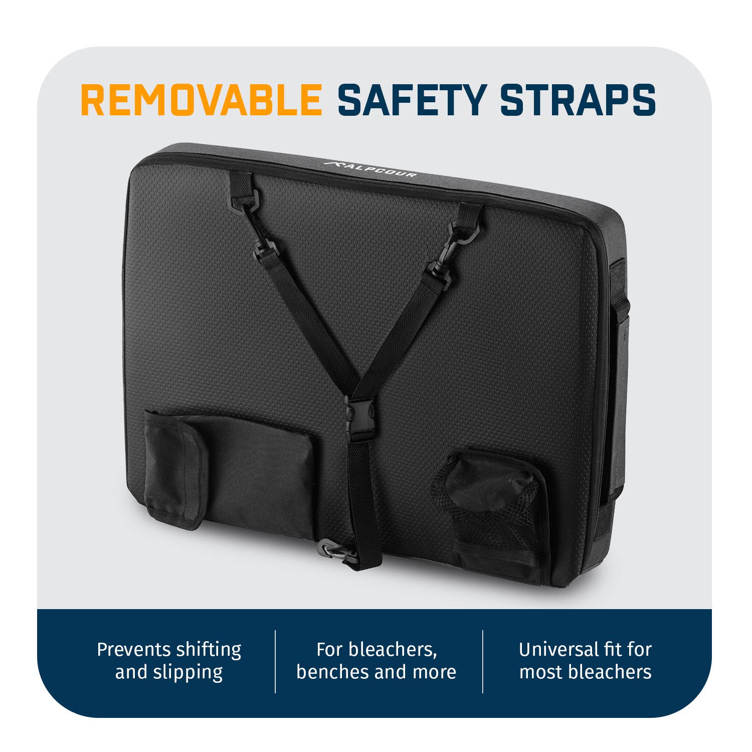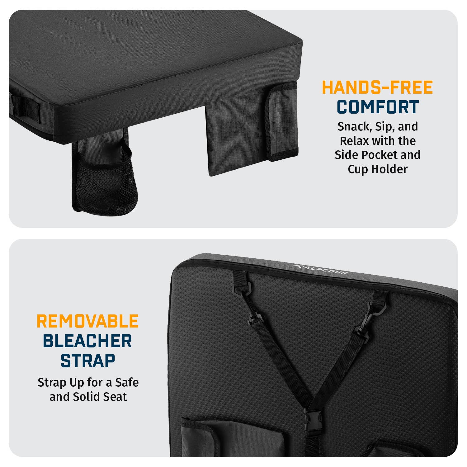 The Portable Heated Extra Thick Stadium Seat Cushion is designed for maximum comfort and warmth during any outdoor event. Measuring 21 x 15 x 3 inches, this stadium seat cushion fits all bleacher and stadium seating, providing extra thickness for hard surfaces. Made from waterproof polyester with an anti-slip bottom, it ensures stability and protection from wet conditions. This cushion includes 3 heat levels (low, medium, high) powered by an included Power Bank, making it perfect for cold days. With a front personal pocket, cup holder, and safety straps that double as shoulder straps, it's convenient for carrying and storing essentials. Ideal for football seats for bleachers, bleacher cushions for adults, and outdoor activities such as camping, kayaking, hiking, and more.